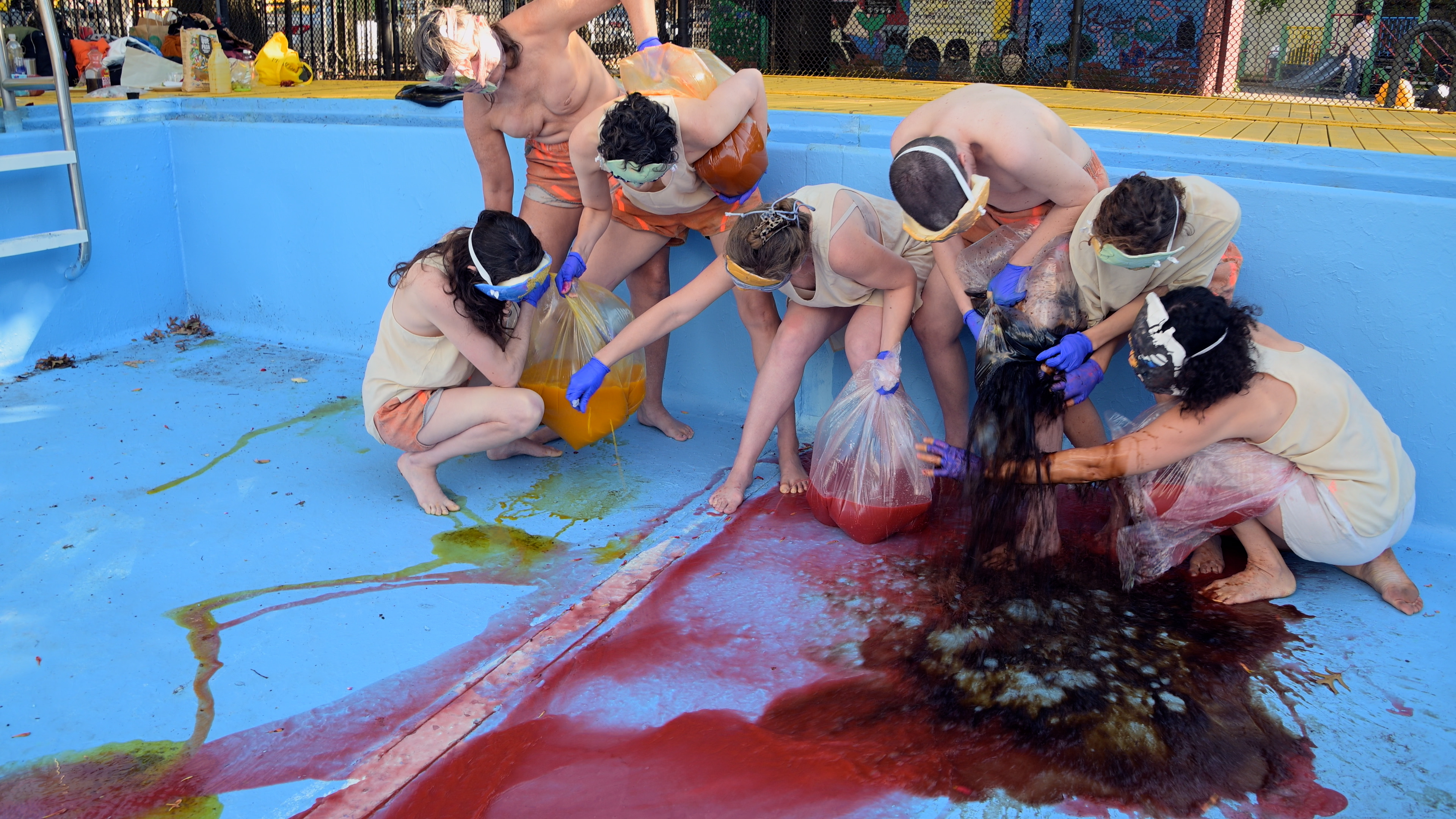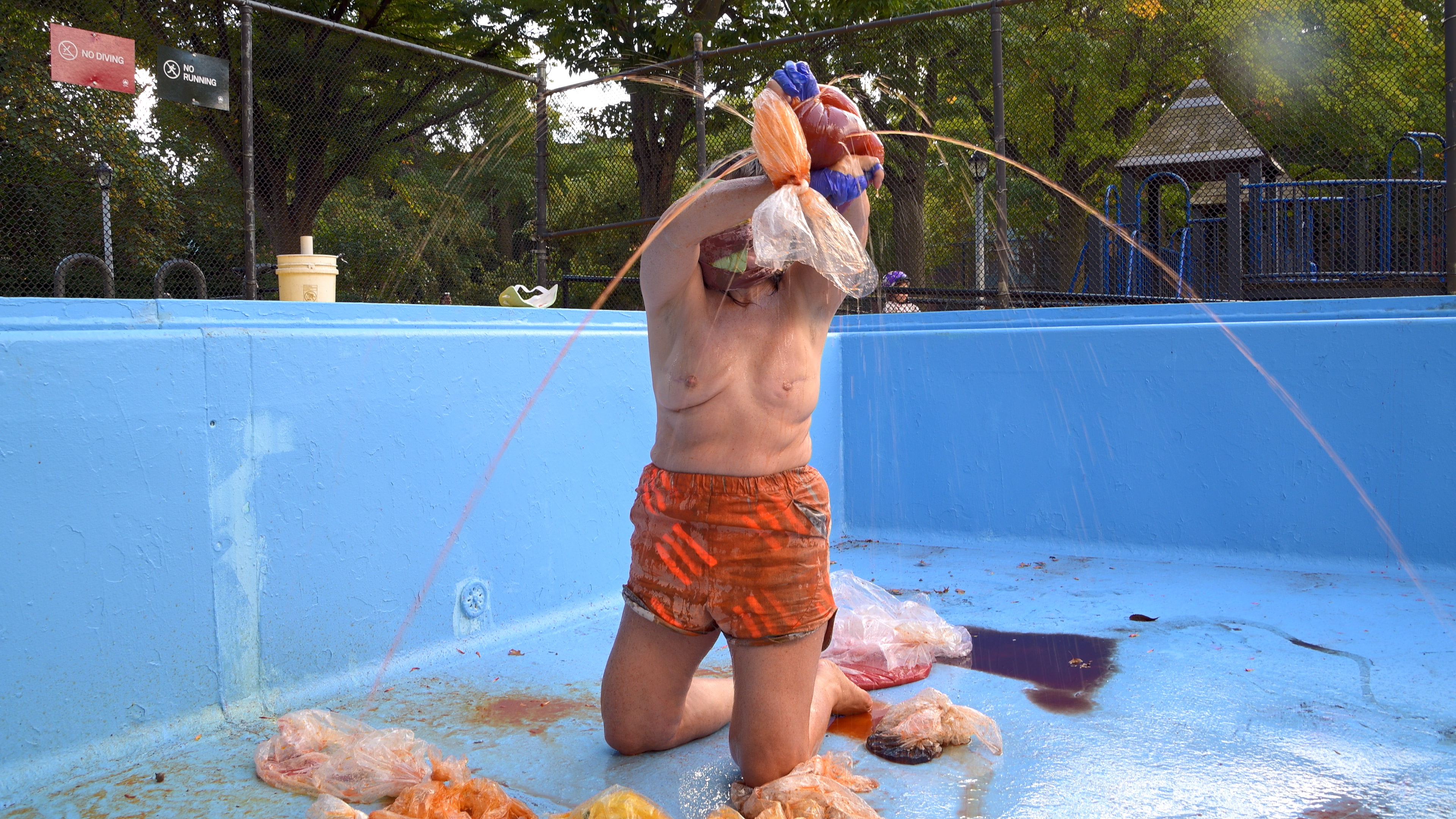 IVF Documents is a poetic reimagining of an ancient healing ritual, addressing the somatic, emotional, and physical realities of In Vitro Fertilization. The video shows people undergoing IVF or who are postmenopausal, moving with large bags of natural dyes in an empty Brooklyn pool. The liquids allude to IVF medications derived from hormones found in postmenopausal urine. The work incorporates animations made from printed genetic testing results and medical bills, aiming to create a visual language for an experience our culture struggles to articulate. Reach out for a viewing link of the full film.